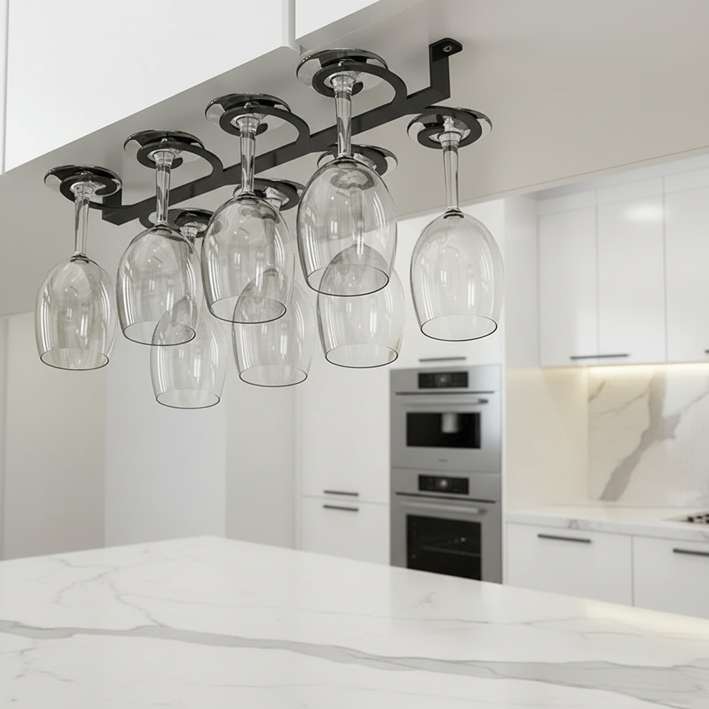 Det är designat för att smälta in sömlöst under vilket köks- eller barskåp som helst och håller dina glas säkra, lättillgängliga och vackert presenterade.